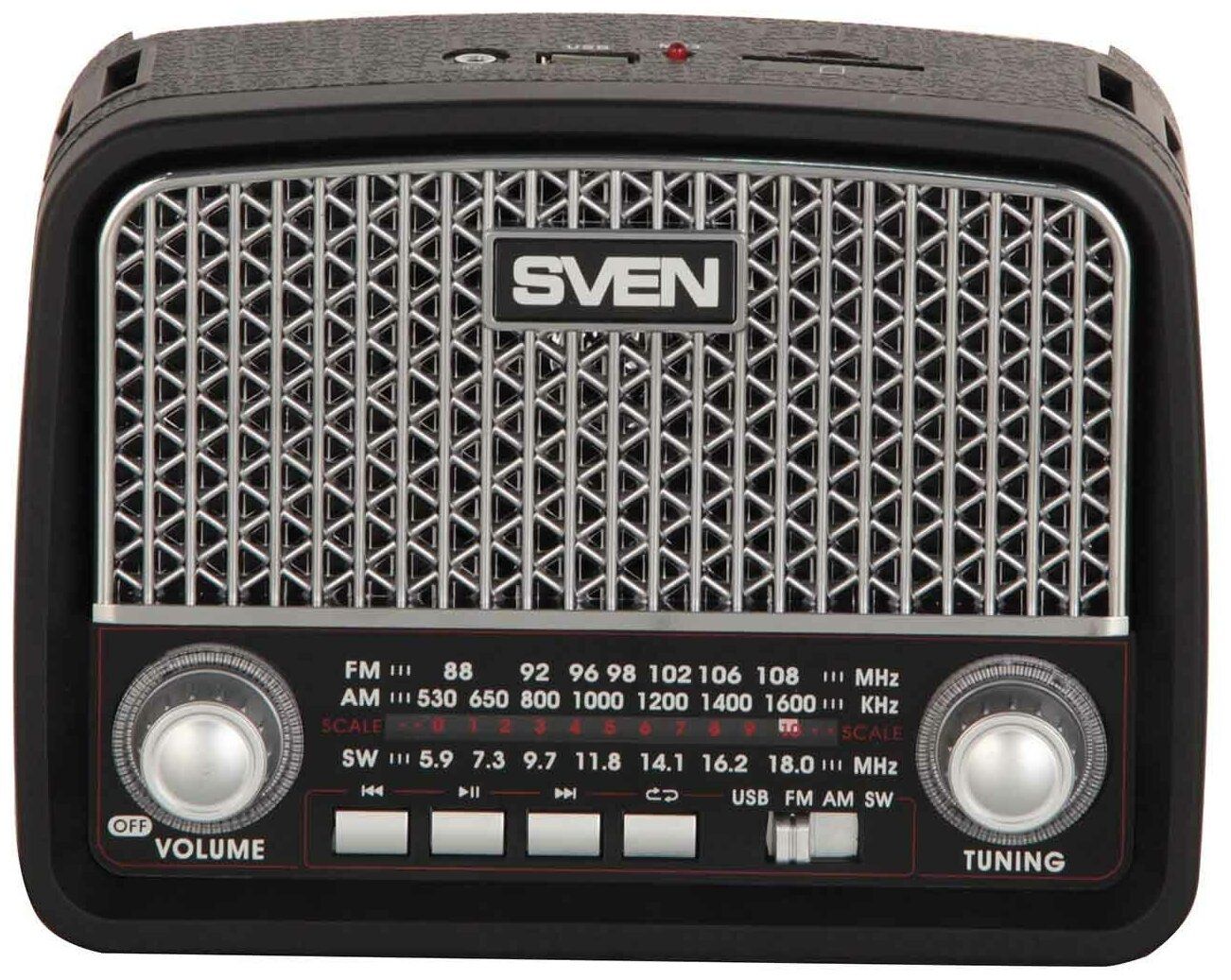 - Диапазоны: FM 87–108 МГц, AM 530–1600 кГц, SW 5.9–18 МГц