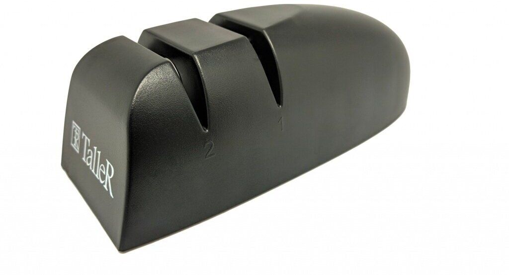 TalleR TR-62506 — классика для тех, кто ищет дешевое, простое и эффективное решение. Это механическая точилка, по функционалу близкая одноразовой, но держится долго, если использовать аккуратно. Двуcтупенчатая схема (грубая и тонкая обработка) позволяет быстро подготовить ножи к работе. Подходит для семей и студентов, которые хотят быстро исправить положение без лишних вложений и сложностей. Судя по отзывам, часто берут как первую точилку для экспериментов на кухне.