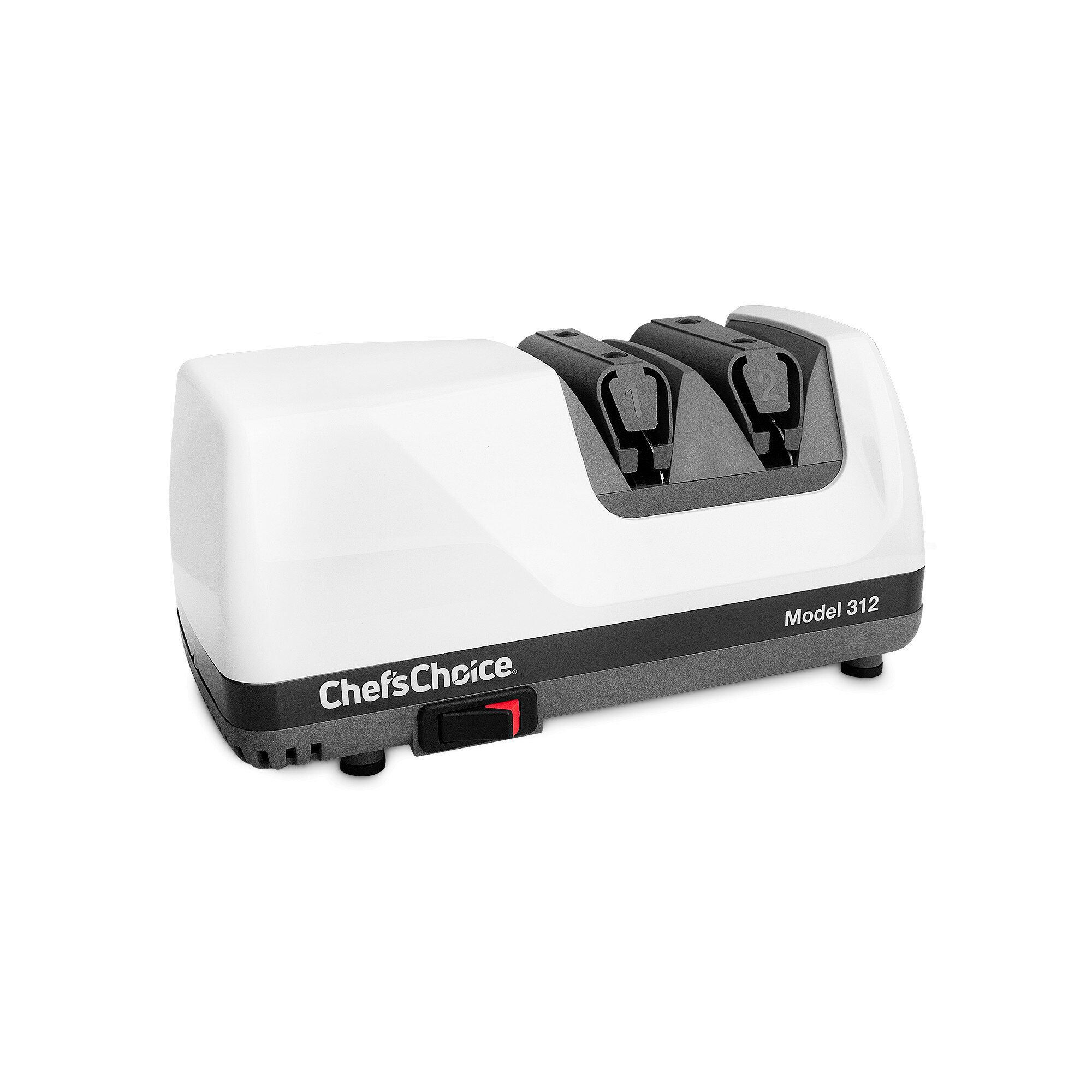Chef’s Choice 312 — «золотая середина» для тех, кто ценит эффективность, компактность и качество. Модель с двухступенчатой системой заточки и алмазными абразивами хорошо подходит для домашних кухонь и небольших ресторанов. Отличается простотой обслуживания и доступностью для новичка. Отмечают точные направляющие, которые делают процесс безопасным и уверенным, а ножи после заточки — острыми как новые.